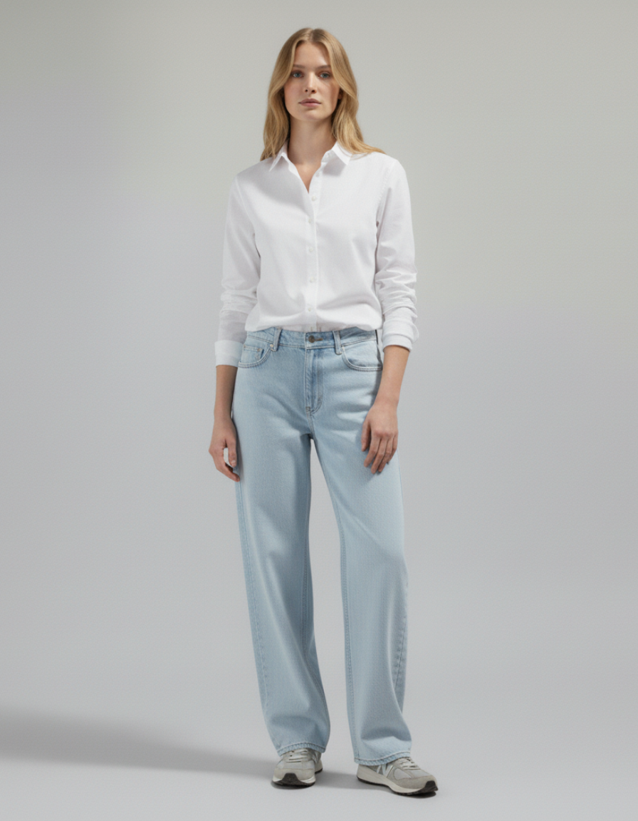 Effortless lightness, refined edge. A minimalist take on light-wash denim — clean, structured, and designed for everyday movement. This piece redefines urban essentials through a lens of quiet sophistication and elevated streetwear.