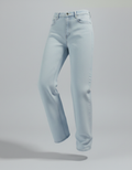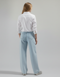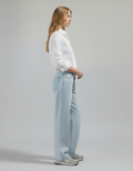 Cut in a straight-leg silhouette with subtle structure and a mid-rise waist, the trousers balance clarity and confidence. The pale indigo tone adds freshness, while the precise seams and refined proportions create a clean, modern attitude.