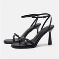 Discreet yet alluring, these sandals embody quiet luxury with a refined silhouette. The square toe and slim straps offer a sensual geometry, while the block heel ensures modern elegance with everyday comfort.
