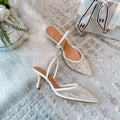 Brings refined charm and delicate craftsmanship to every step. With its pointed-toe silhouette and intricate floral embroidery, it captures a sense of grace designed for life’s most memorable occasions. The satin finish in a subtle ivory tone reflects understated luxury, making it an impeccable choice for bridal wear and evening ensembles.