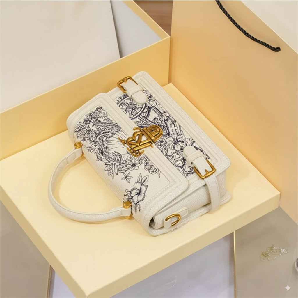 This top-handle bag redefines sophistication with a sensual, artistic touch. The intricate floral motif lends a whisper of romance, while the structured silhouette exudes timeless authority. Feminine yet bold, it’s a piece that captivates with every detail.