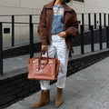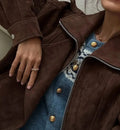 Embodies modern sophistication with a suede-effect biker silhouette. Designed with oversized proportions, it merges bold structure and minimalist elegance for everyday premium style.