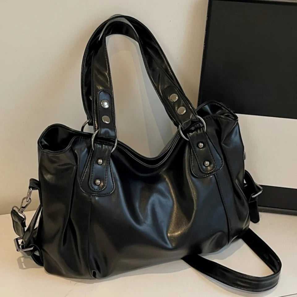This satchel bag blends functionality with discreet sensuality. Its deep tone, soft structure, and polished surface evoke authority while keeping elegance subtle and refined. A statement piece for women who balance strength and allure.