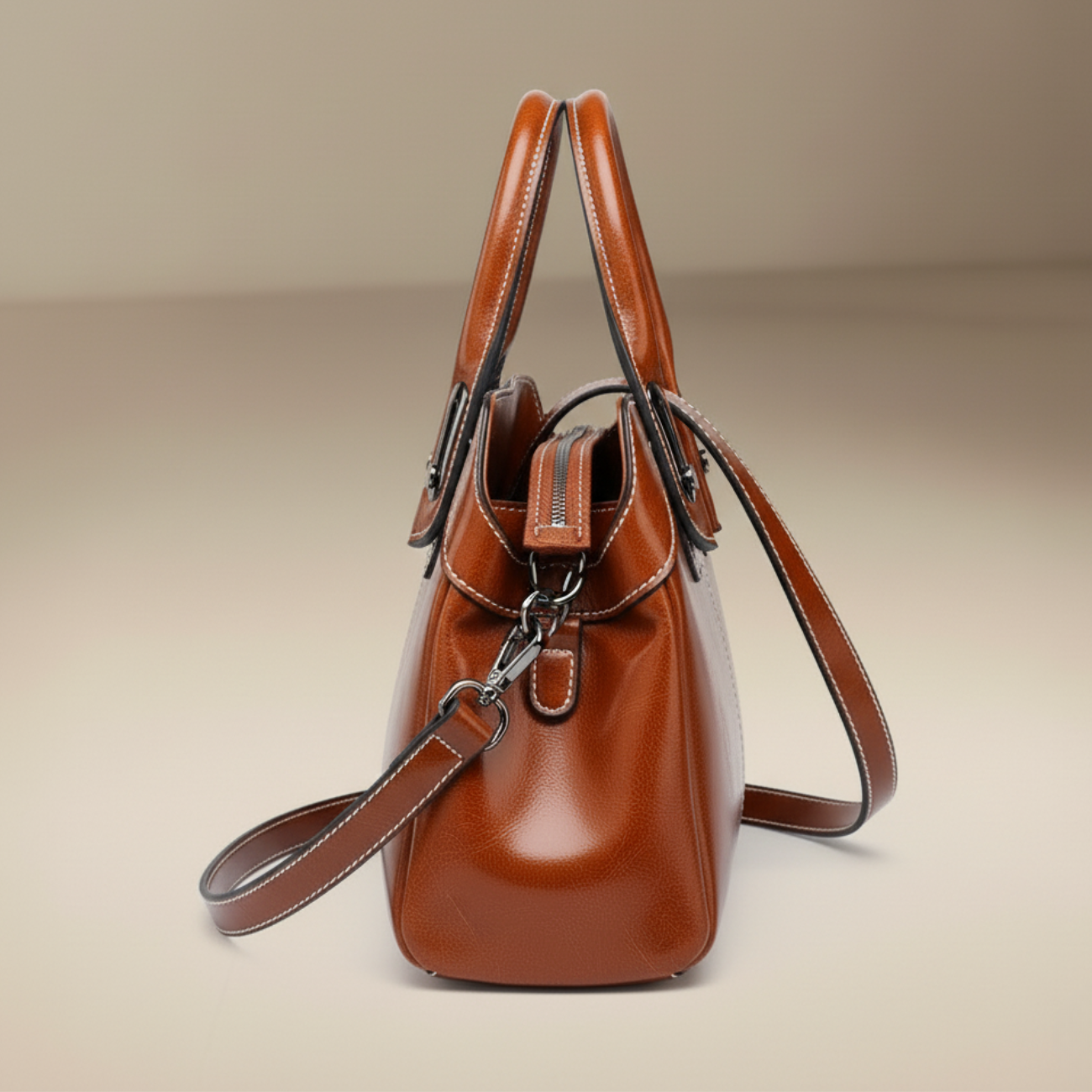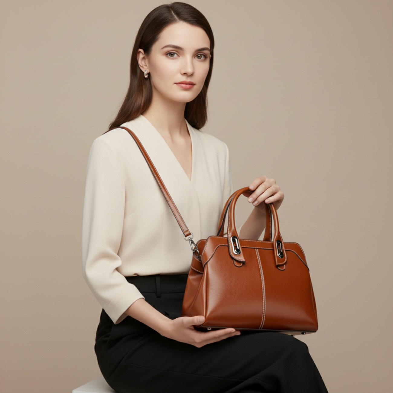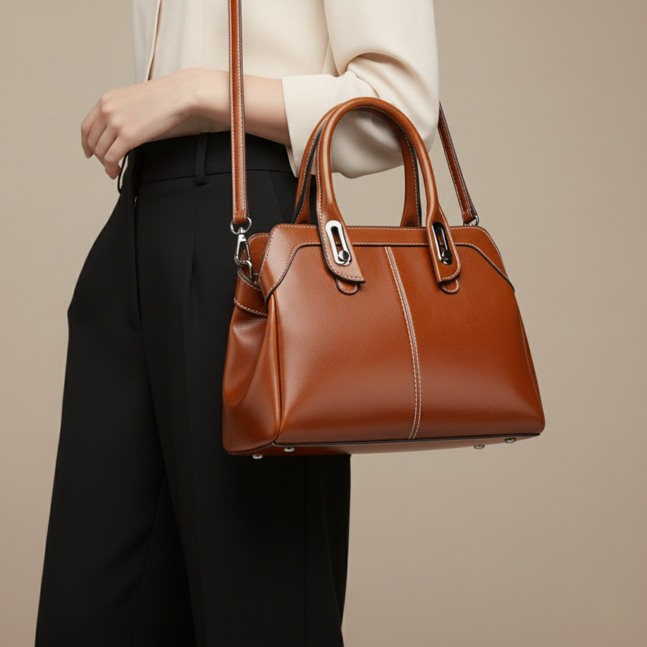 Understated yet commanding. The Elarion Tote brings classic craftsmanship into a modern frame — defined lines, rich caramel tones, and a silhouette that blends structure with softness.