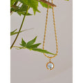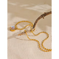 Soft shine, clean lines. A rounded pearl rests on a smooth bezel, on an oval beaded chain in gold or silver-plated metal—fresh, luminous, discreetly seductive.