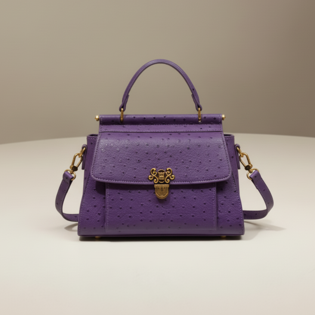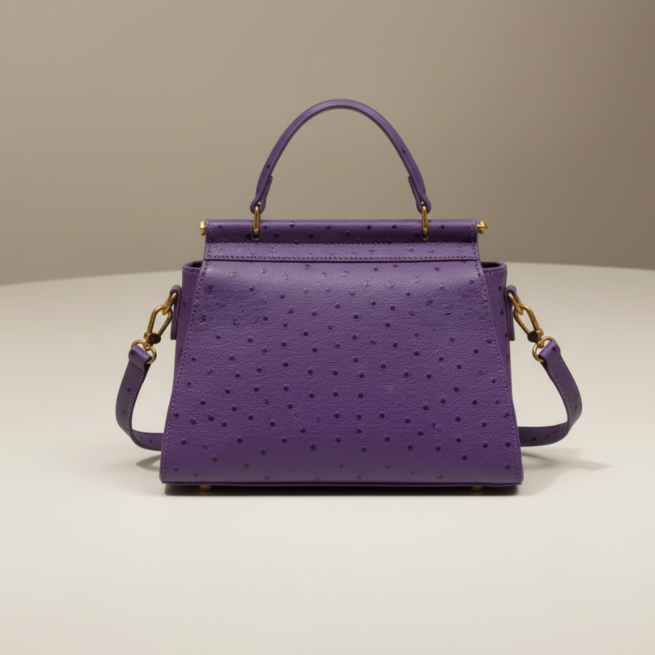 Crafted from Velvigrain™ Leather, a premium vegan composite developed to mimic the tactile depth of fine-grained ostrich leather — matte, structured, and luxuriously supple.