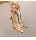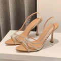 Effortless glamour with a modern edge — these slingback heels blend transparency and light-catching details for a look that elongates the silhouette while keeping it refined and sensual. Designed to transition seamlessly from cocktail hour to evening soirées.