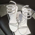 Spiral ankle straps embellished with shimmering accents for statement appeal