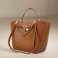 The minimal front body contrasts with the refined top strap and gold-tone turn lock, balancing simplicity with a touch of polished sophistication.