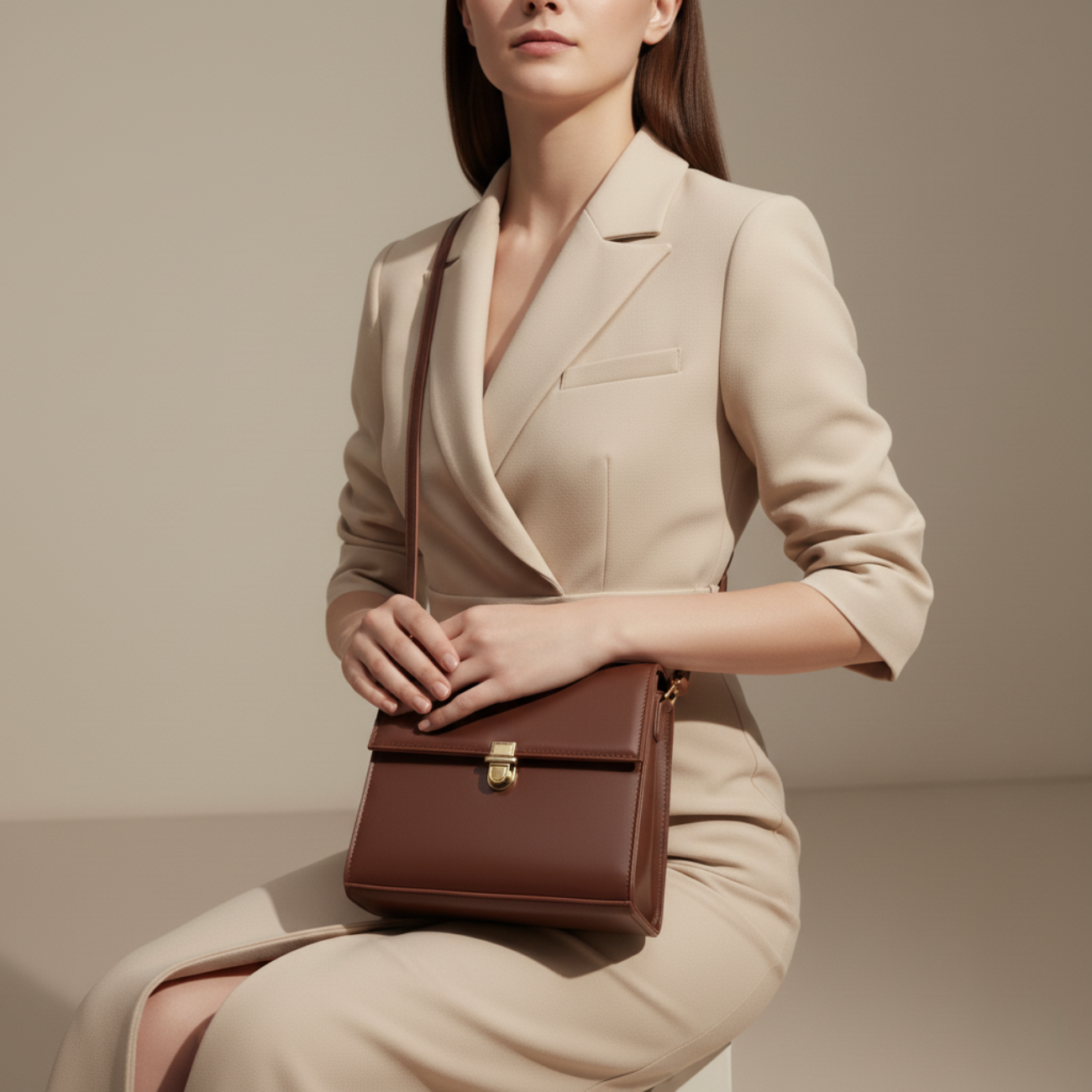 Architectural elegance in its purest form. The Aura Crossbody distills quiet luxury into precision — every line intentional, every detail balanced between restraint and sophistication.